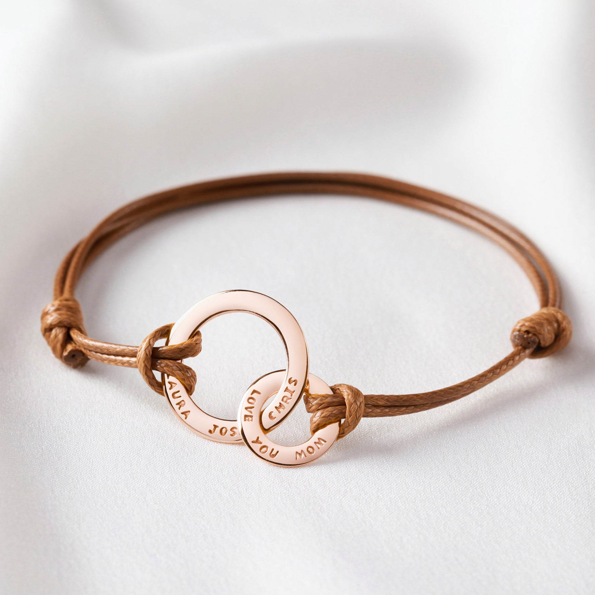 Features: Personalised engraved rings, adjustable bracelet size (XS to XL)
